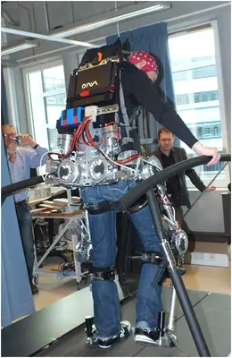 The Mindwalker project’s aim was to develop a system that helps people with an impairment of the lower limbs with their daily activities. This system makes use of the measurement of EEG as an input for a Brain-Computer Interface (BCI). The BCI controls the input to an exoskeleton, which supports the weight of an adult person and assists the movement of the lower limbs. The subjects are controlling this feedback-loop with their EEG activity by imagining movement (Mindwalker 2013).
