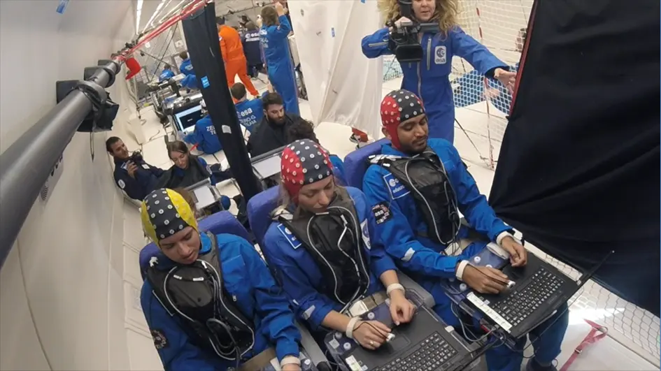 Subjects were asked to perform tasks during a parabolic flight in which they experienced both microgravity (0g) (at the top of the parabolic curve), and hypergravity (1.8g) (during ascent and descent of the parabolic trajectory) for approximately 20 seconds each. Due to the large scope of the project, team members were allowed the opportunity to address their individual research questions that were relevant to understanding human brain and cognition in altered gravity. Their research was focused on the P300 response in micro- and hypergravity, neuronal replay in the vestibular and cortical sensory areas, investigation of the mu rhythm and, brain activity modulation for BCI control under the impact of gravitational changes.