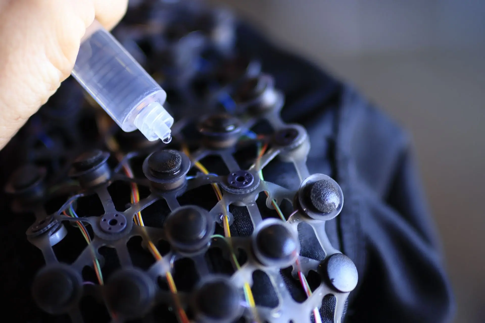 Figure 4: A grid of 24 sponge-based electrodes is built inside the cap.